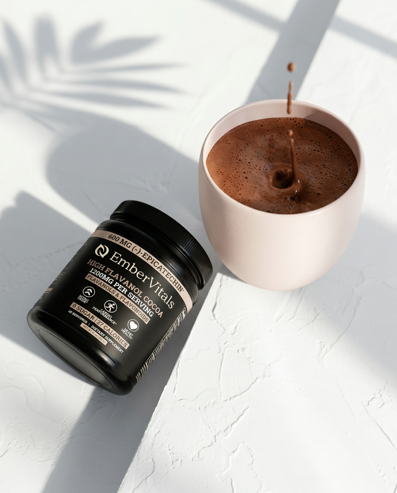 Your body already has this machinery. It's just not getting the raw material it needs. Each serve of Ember Vitals delivers over 630mg of cocoa flavanols. That's more than 3x the dose the European Food Safety Authority approved for maintaining healthy blood vessel function. Clinical studies show measurable improvement in as little as two weeks of daily use.