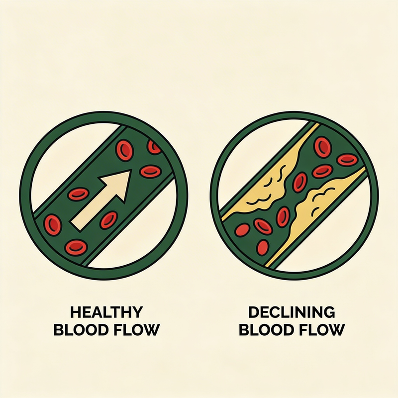 You don't feel it at first. Maybe you're a little more tired than usual. Your hands and feet get cold more easily. You need an extra coffee to get through the afternoon. These feel like separate things. They're not. They're all signs that your blood flow is quietly declining.